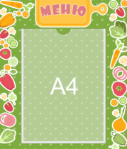 Чтобы воспитанники детского сада всегда знали, что у них на завтрак, а родители были в курсе, чем питаются их дети, расположите в столовой стенд «Меню». Установите его в информационном уголке, заменив обычный листок с рационом питания детей. Выберите подходящий стенд из имеющихся в наличии вариантов. Выбранное изделие порадует насыщенными цветами и рисованными изображениями вкусных блюд или поварят, что еще больше разожжет детский аппетит. Яркий и стильный дизайн привлечет внимание и взрослых и малышей, не оставив незамеченной размещенную информацию. К слову, файлы с меню будут располагаться в специальных пластиковых карманах формата А4, которыми оснащен каждый стенд.