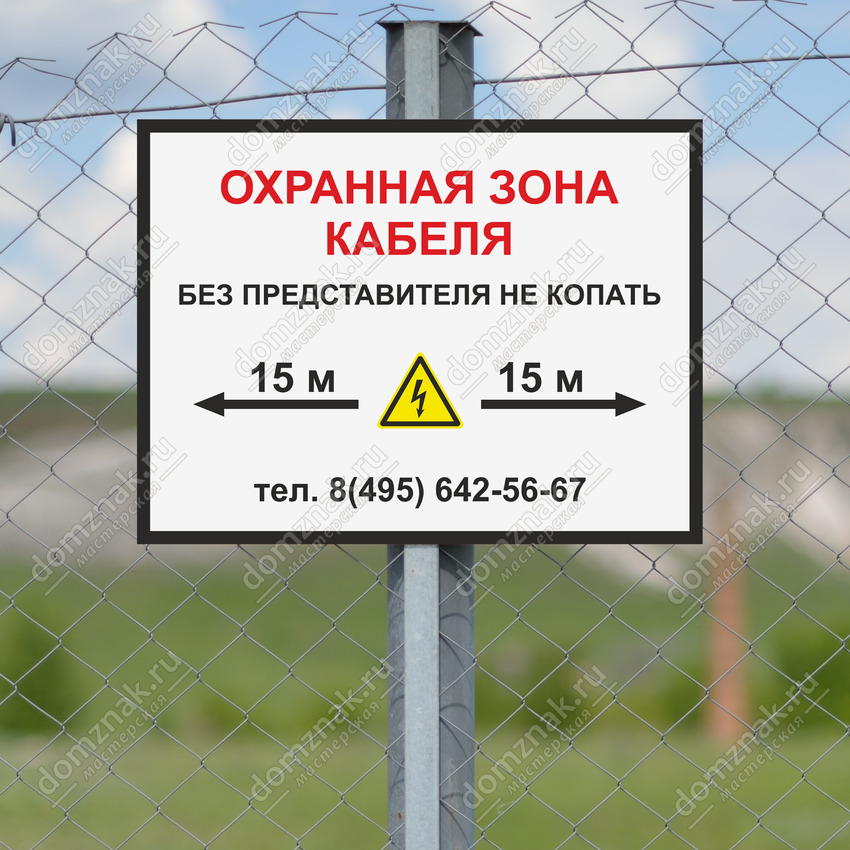 Знак «Охранная зона кабеля» изготавливается в нескольких вариантах: