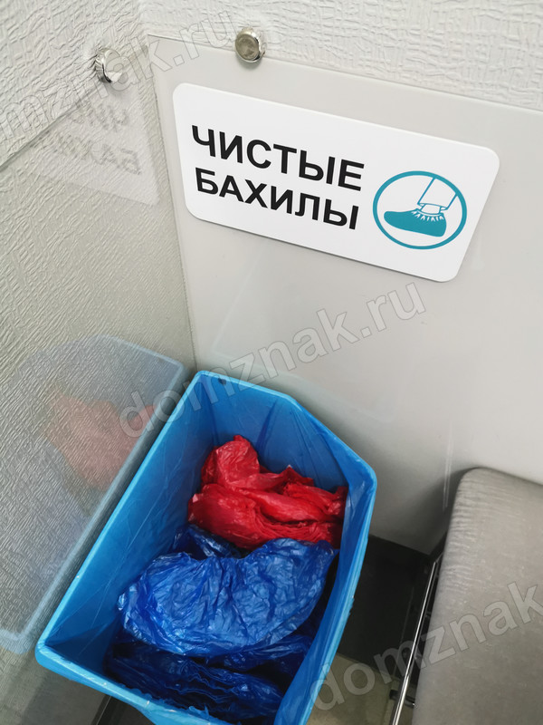 Табличка «Чистые бахилы» изготавливается в нескольких вариантах: