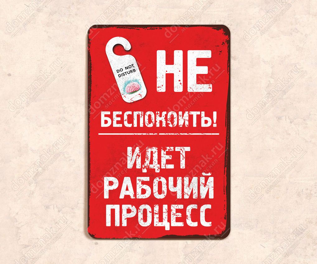 Табличка «Не беспокоить, идет рабочий процесс» изготовлена из пластика ПВХ, толщиной 4 мм. Изображение наносится по технологии УФ-печати. Табличка предназначена для использования как в помещении, так и на улице.