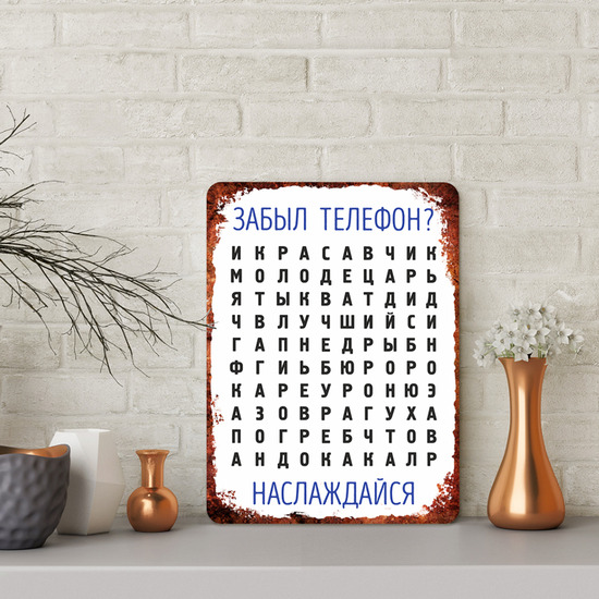 Табличка «Забыл телефон? Наслаждайся» изготовлена из пластика ПВХ, толщиной 4 мм. Изображение наносится по технологии УФ-печати. Табличка предназначена для использования как в помещении, так и на улице.