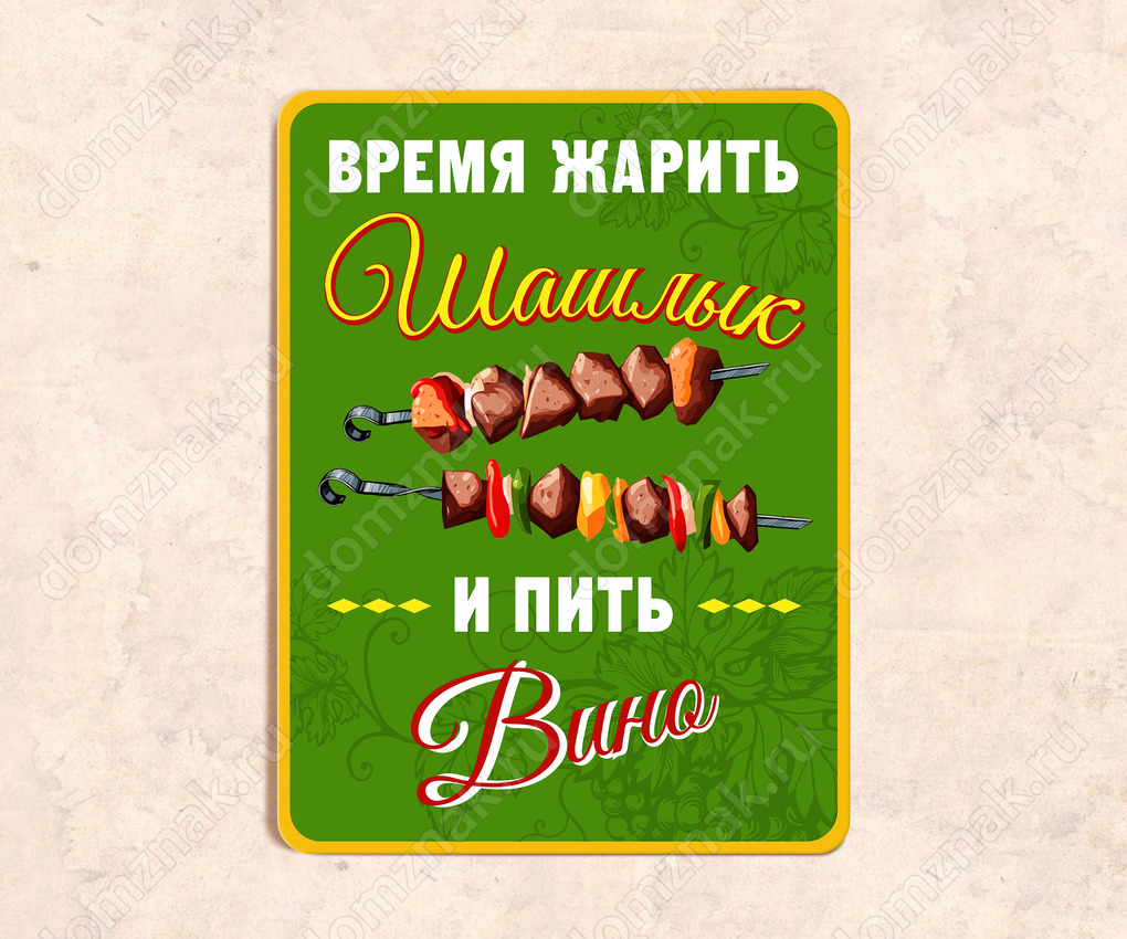 Табличка «Время жарить шашлык и пить вино»